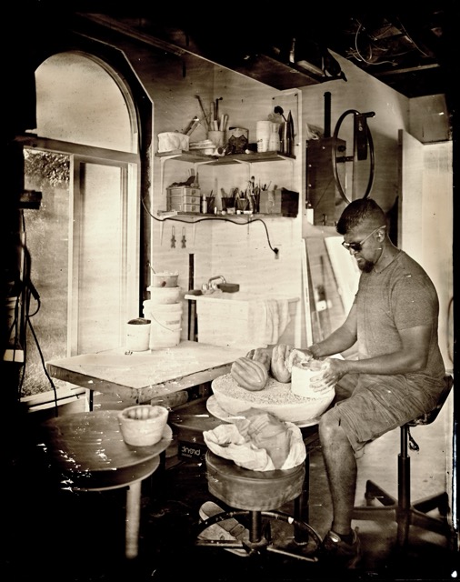 Ceramics is among the few arts that demand faith in fire to complete. “A lot could go wrong in the kiln—cracking, exploding, colors not turning out how you envisioned,” Alvarez says. “Even if it survives the first firing, the second could prove disastrous.” Alvarez points out that the process is more physical at the beginning stages because the artist is building with the clay, molding it, and shaping it. After that is the waiting and thinking about a color theory. “You’re just thinking, ‘How am I going to finish the piece… what’s the color going to say about the work? Or the glaze? What’s it going to do?’ ”