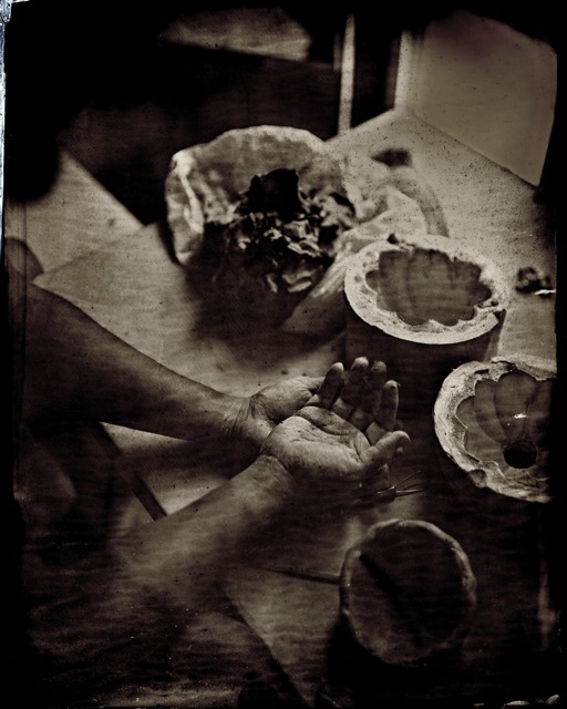 Alvarez’s sculptures of tools, machinery, and produce in various stages, from fresh to desiccated, have been displayed in a number of California galleries, such as at the Sylvan Gallery in Sand City and, locally, at the Herbert Sanders Gallery and the Art Building at San José State University.