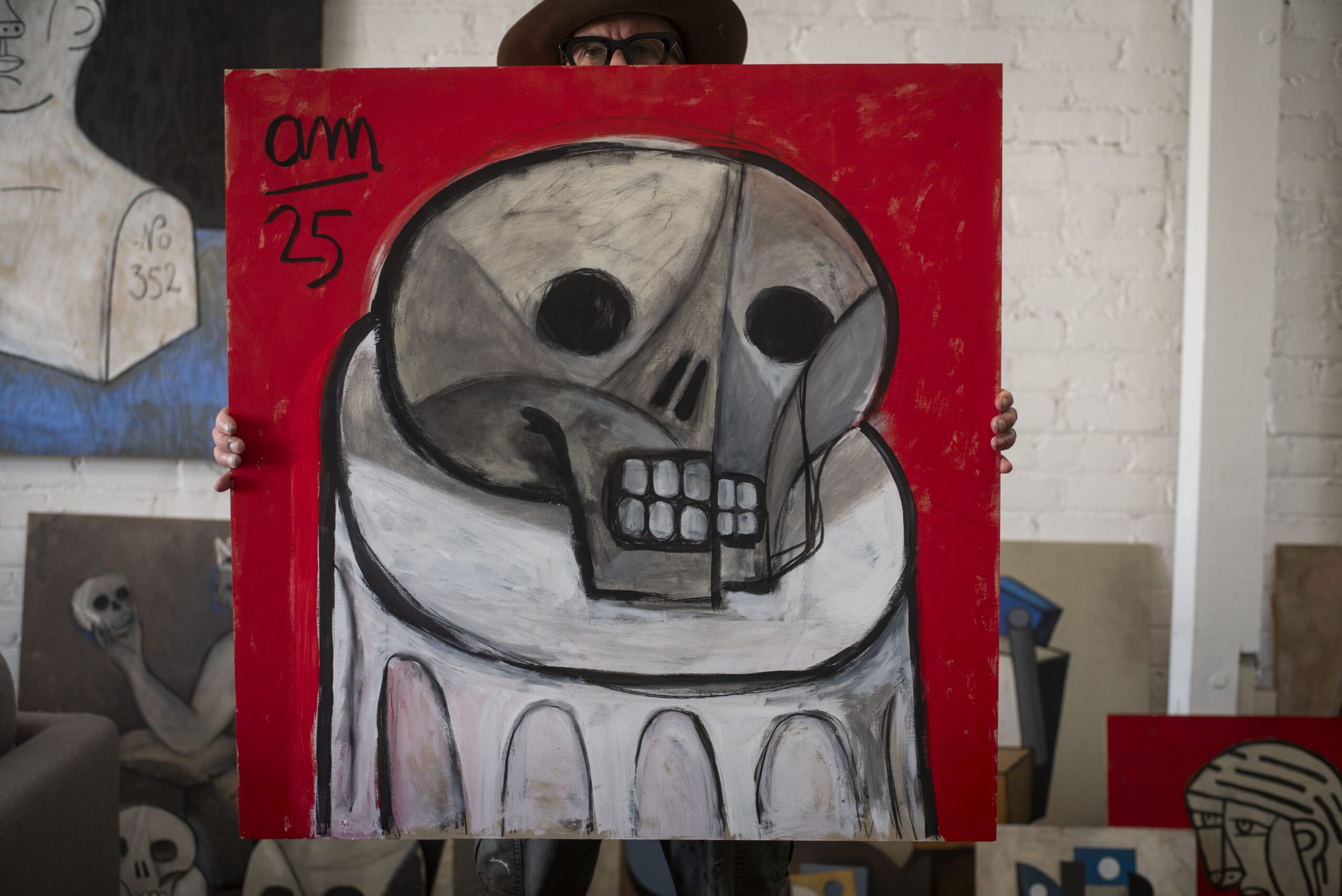 Muccino’s artistry has been influenced by artists like Picasso, Matisse, and Basquiat, as well as the art and architecture of Rome, where he grew up. As Muccino recalled, “A lot of it also comes from growing up in Rome as a kid, riding my bicycle around, drawing the statues of Bernini and the churches of Michelangelo.” Despite his struggles to call himself an artist, Muccino eventually became a creative director and built several businesses in San Jose, including Liquid Agency and Solid Branding. Now, he is ready to return to his roots with a solo show, two decades after his first collaborative exhibition at the Institute of Contemporary Art. This solo exhibition weaves his life, early experiences, and later influences and showcases his meditations on life, mortality, and the death of dreams.