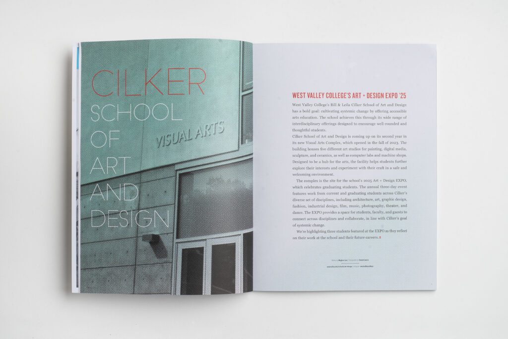 At Cilker, she saw a different possibility. Supported by a strong tax base, West Valley can offer in-district students free tuition while maintaining high-quality facilities. Mirabelli-Lopez has used that foundation to tighten the curriculum, launch new offerings in industrial design, digital art and illustration, and curatorial studies, and to reimagine the fashion program so that creativity and craft carry equal weight. “I’m good at creating environments for creative people to do what they do best and not worry about the details,” she says. “That’s what I do as a dean.”