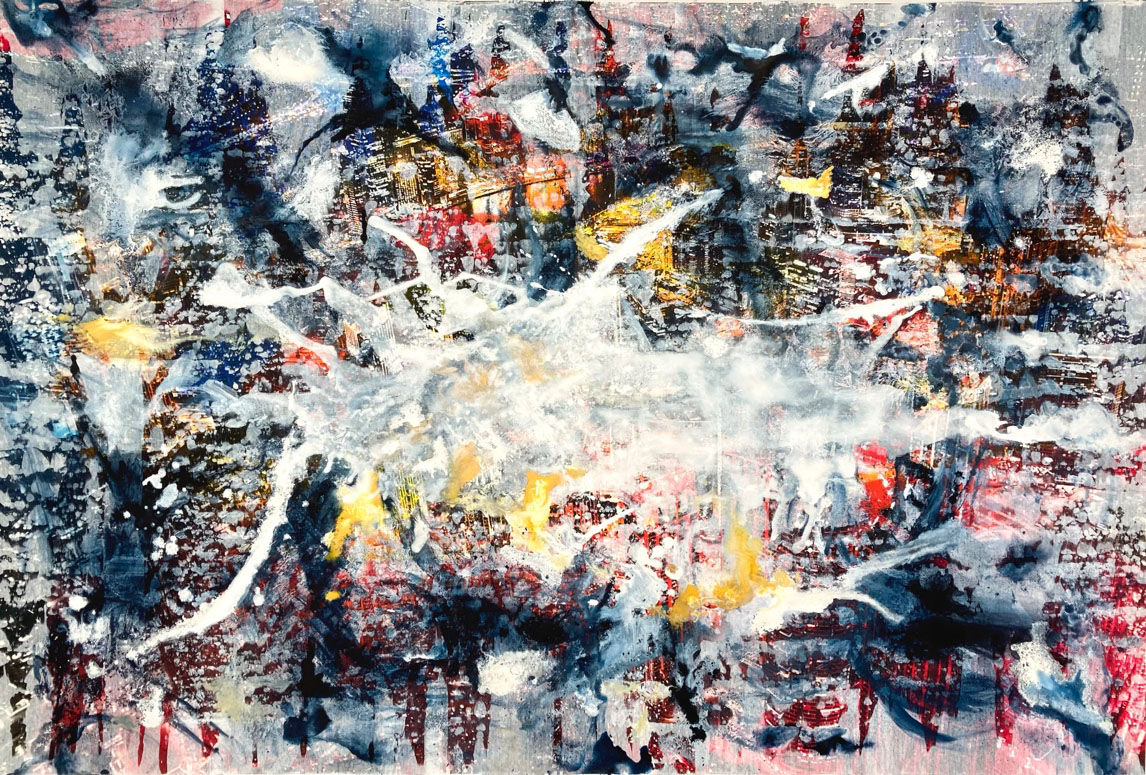 #1 – “B U R (S) T (H)” – ink and acrylics on photograph on canvas, 40 x 60 x 1.5 inches